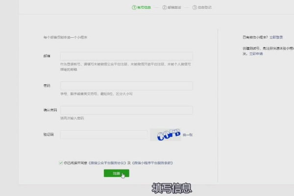 3、在小程序界面中,填寫(xiě)信息,點(diǎn)擊注冊(cè),即可開(kāi)始制作微信團(tuán)購(gòu)小程序。